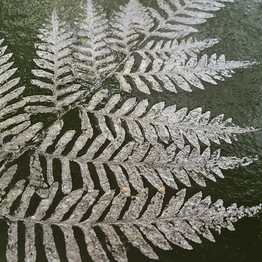 I use actual ferns, leaves and feathers to create my fossilised works. The leaves are pressed, then coated with layers of silver mica or coloured glass powder then fused under a sheet of glass. The organic matter burns away at the high kiln temperatures required to fuse glass, and the mica and glass powders fuse … Continue reading Fossilised Glass
